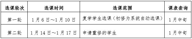 (2)重修选课时,请特别注意教学班所在教学点,慎重选择教学班,以免课程学习和考试受到影响。选课如有问题,请在1月14日~1月17日的工作时间(8:30~16:00)联系学务老师。