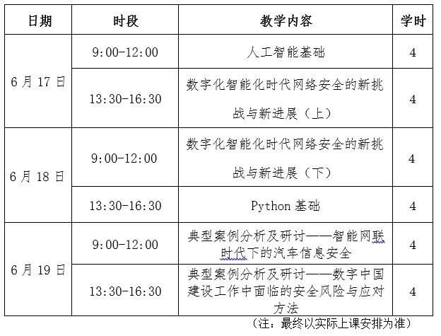 本次研修目的是让参加研修人员了解并重视信息安全和人工智能对今后社会发展的影响和重要性,通过学习,掌握Python编程与信息安全算法的基础知识,学习将人工智能算法借助Python应用到信息安全技术中。