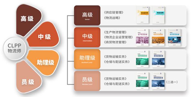 物流师认证级别分为:员级、助理级、中级、高级四个级别,课程考核体系如下: