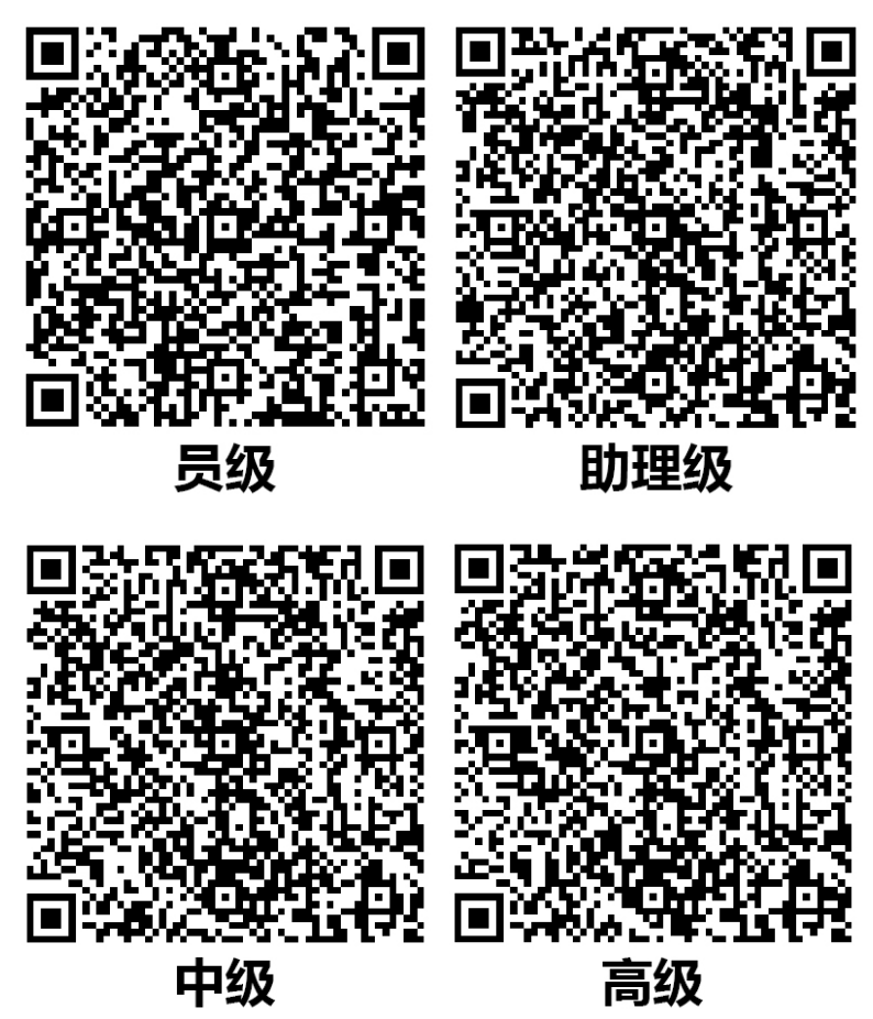 1.请根据拟报名级别,扫描下方对应二维码,填写相关信息,进行网上报名。