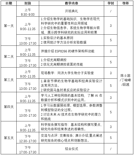 通过将生物学、人工智能、电子学等多元学科融会贯通,以研究斑马鱼生理节奏为实践主线,运用跨领域智能技术,追踪生命行为轨迹,探寻生物节奏内在奥秘,透视大自然律法之美,激发学员对科学之渊薮的终生好奇心,厚植创新思维和跨界能力。