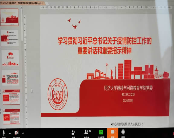 2020年2月26日下午13:30,公司教工第二党支部以“不忘初心、牢记使命,深入学习贯彻习近平总书记关于疫情防控工作的重要讲话和重要指示精神,保障教学工作顺利开展”为主题,通过韦德体育Zoom平台线上会议室召开首次线上组织生活会,会议主题:1、深入学习贯彻习近平总书记关于疫情防控的重要讲话和重要指示精神;2、总结和表扬支部党员在公司疫情防控阶段发挥先锋模范作用;3、对下一阶段工作进行部署和安排,动员党员同志继续发挥先锋模范作用,配合公司疫情阶段教学工作正常开展,保障公司学历继续教育线上教学工作进行。