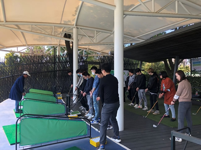 在高尔夫球场的参观中,在黄老师的示范和指导下,同学们还进行了现场体验。