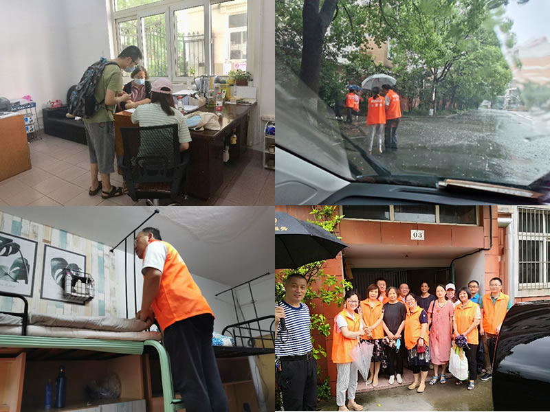 根据学员的反馈情况,经审核后,公司为符合条件的上海学员进行了进校申报,安排他们7月3日进校办理退宿手续。收到外地学员的委托书后,需要老师们代为整理物品、打包,在学员指定时间在校门口交接或快递给学员。由于学员较多且物品繁杂,又不能出现物品差错和纰漏,就使一件简单的事情在特殊情况下变成了一项复杂工程。7月6日,在公司党委安排下,教工第一支部的党员们冒雨来到宿舍,为语言班学员的物品整理和装袋开展志愿服务。大家打包的打包,登记的登记,贴标签的贴标签,搬运的搬运,整个过程忙而不乱。为了确定每个学员的物品,班主任曲老师和学工办谢老师在宿舍和学员们逐一进行了视频通话、物品核对。和学员们约定在校门口交接行李的时间快到了,外面仍下着瓢泼大雨。大家顶风冒雨,趟着齐踝深的水进进出出、搬上搬下;为运送方便和行李物品不被淋湿,周锦贵、孟宪明等老师还把自已的车开来用作运输工具。在大家的共同努力下顺利地完成了整理打包工作。7月8日下午,随着满载着行李的快递车离开沪西校区,为语言班学员办理退宿的工作告一段落。