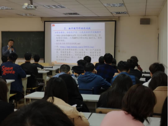 11月12日上午,金福安经理在帘青楼为公司国际交流中心语言班的同学进行了一场题为“新中国70年经济成就及发展趋势”的形势教育课。他通过详实的经济数据为同学们介绍了新中国成立特别是我国改革开放四十年来所取得的经济成就;从产业结构优化、社会消费状况和需求的变化以及老员工消费等方面分析了当前的经济形势。世界经济存在着不确定性,我国经济发展面临着新的风险与挑战。他还特别分析了大家关注的中美贸易战的实质,强调国家经济稳步发展的重要性。展望未来,随着减速增质的不断深入,我国的经济发展将处于长期向好的趋势。他鼓励员工们要刻苦学习,增长才干,为国家的发展做出自己的努力。