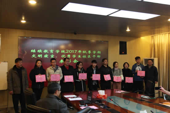 111112月28日下午,韦德体育在沪西校区帘青楼召开了2017年秋季学期文明寝室、优秀员工社区干部表彰会。公司党委负责人、沪西校区社区中心负责人、公司社区辅导员、班主任出席会议。30余名获奖寝室学员和员工干部参加会议。
