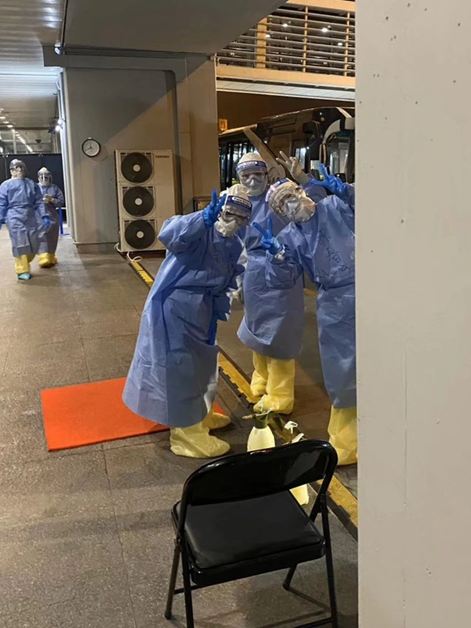 3月31日晚,她随团出发来到了浦东新国际博览中心,经过大家马不停蹄地紧张筹备,方舱开舱了。在院领导的带领下,大家分工有序,各司其职,马上投入紧张的收治患者工作中。