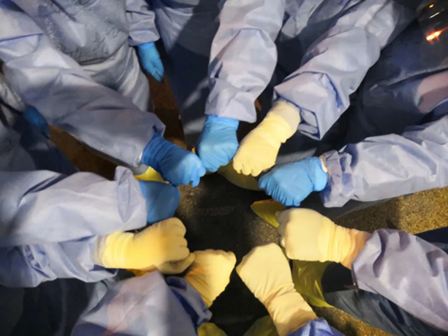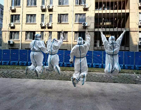 4月10日朱戴路方舱医院刚建好,晚上11点张宁和其他医护人员一起开始接收患者,一次就收了1000多人。虽然医护人员来自两家医院,但大家共同开展工作,在抗疫一线做出自己的贡献。