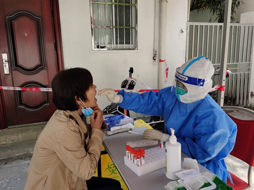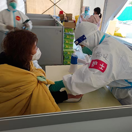 2022年3月上海疫情刚爆发的时候,宋丹雯就积极加入到抗疫的队伍中。在完成本院的核酸采样任务的同时,她还支援社区完成采样任务。她的身影总是出现在小区、街道、公司。