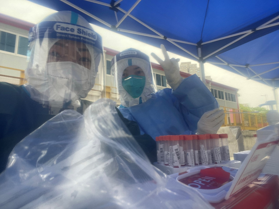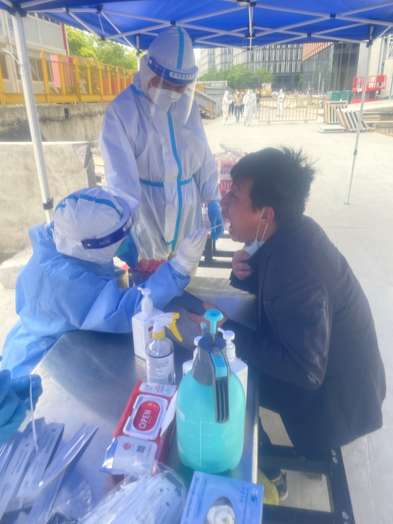 疫情中,张红红深入现场,为工地人员进行核酸检测。她风雨无阻,坚守岗位,相信明天会更美好!