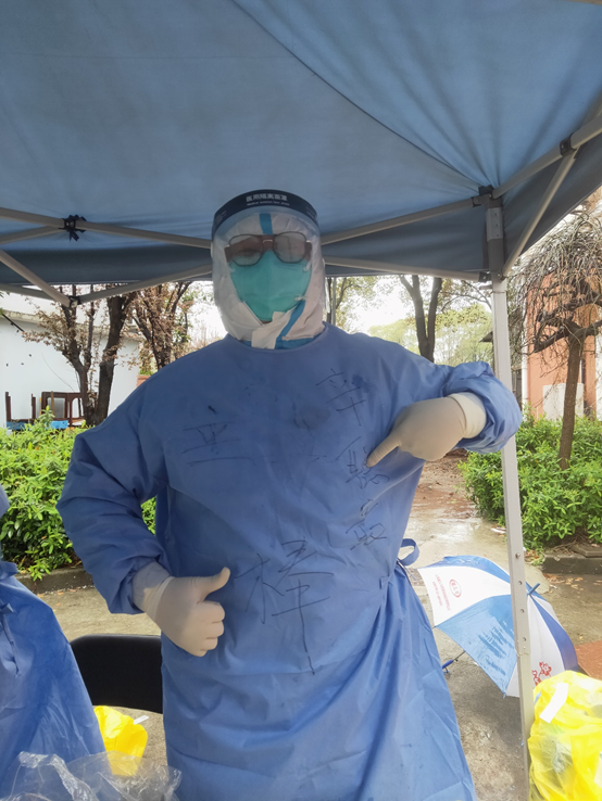 2020级护理学专业(嘉定)的辛聪同学积极投身于上海抗疫一线。在方舱医院,他认真学习工作流程,熟悉舱内环境,健康预检、安置床位、登记入区、健康宣教,工作有条不紊,对待患者耐心细致。在这场持久的抗疫战中,他还参加了医院、小区的核酸采样任务,每次都能圆满完成。每天防护服包裹至少10小时,汗水伴随着面屏上的哈气,总会给人一种“流泪”的感觉;工作结束后,手上常常留有深深的勒痕。面对疫情,他勇敢无畏,敢于担当。