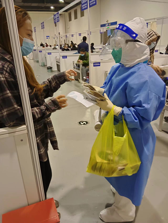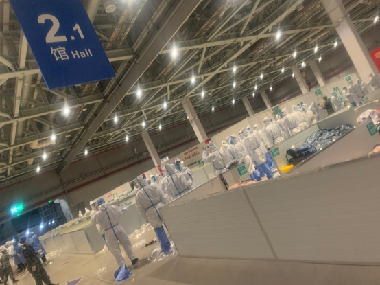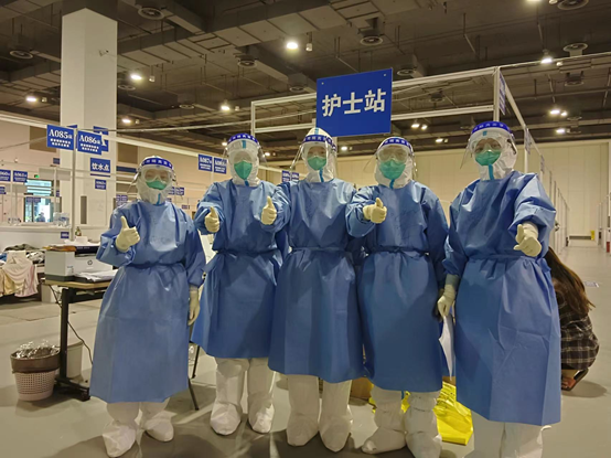上海疫情暴发以来,毛宏丽同学坚守在抗疫一线,她和同事们来到了“四叶草”方舱,为开舱收治患者做准备。