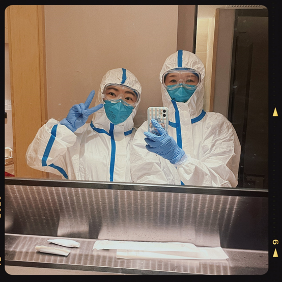 2022级护理学专业(1班)(黄浦)的许晨同学在社区医院工作。疫情以来,她一直参加着各种抗疫工作:参加过小区大筛、上门采样、隔离酒店工作等等,已经超过一个多月没有回家了。她希望疫情快点结束,所有人都能过上正常的生活!