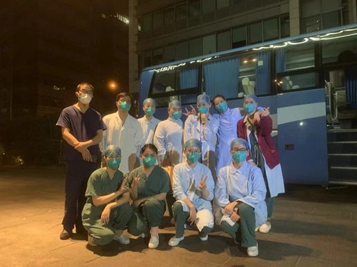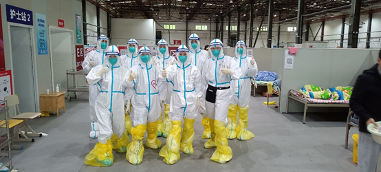 收到前往新国际博览中心方舱医院的通知时,朱一云便主动请缨,申请前往抗疫最前线。3月29日晚入驻后,他们便马不停蹄地开始了准备:搬运物资、清点设备、整理床铺、物品消毒等工作;4月8日,圆满完成医疗救治任务及与其他医疗队进行工作交接后,医疗队收拾行囊继续出发……