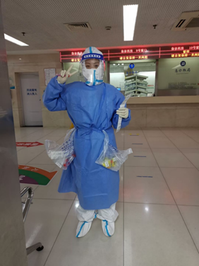 侯敏莹说,每次上班前,我都不喝水不吃东西,生怕在工作中上厕所,也是生平第一次穿上纸尿裤,做好个人卫生准备。每天穿着可爱又笨拙的大白穿梭在患者床边,仔细地询问他们的感受、需求,解答他们的问题……时间过得很快,一晃就到了下班时间,整理好本班工作记录,做好交班结束一天的工作。在我工作的第七天,自己分管的第一批出院病人确定了,看着他们高高兴兴、健健康康的回家,内心充满着对自己辛苦工作的肯定和骄傲!