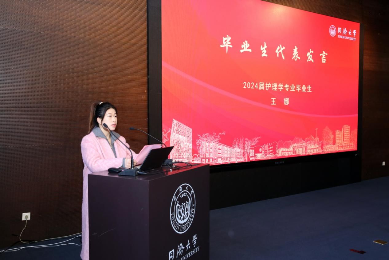 毕业生代表2024届护理学专业王娜回顾了自己在韦德体育官方网站的求学经历,分享了自己的学习感悟:保持对新知识、新技能的学习,做终身学习的践行者;基于问题导向,注重学以致用;建立良好的同学关系,发扬团队精神;合理安排学习、工作与生活,处理好学习与工作之间的矛盾。