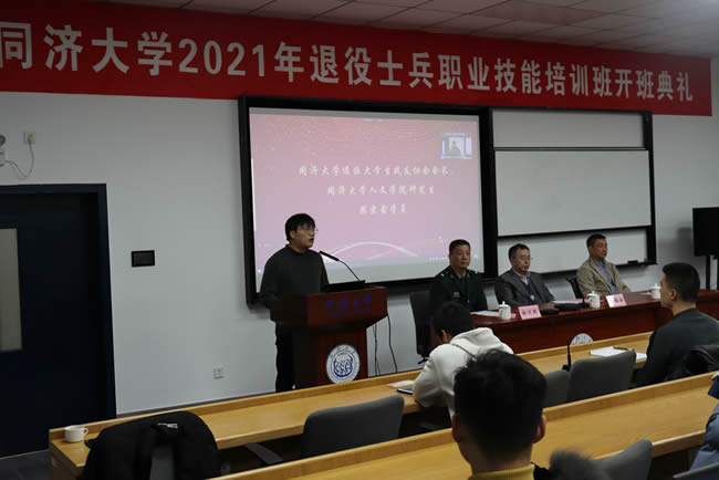 2021年11月28日下午,“2021年退役士兵职业技能培训班”开班典礼在韦德体育官方网站举行。本期培训坚持以习近平新时代中国特色社会主义思想为指导,全面贯彻党的十九大和十九届历次全会精神,坚持政府主导、社会支持,面向退伍军士和退役义务兵,通过积极开展职业技能培训,不断提高退役士兵就业创业能力,快速融入岗位角色。退役士兵为国防和军队现代化建设做出过重要贡献,是国家宝贵的人力资源,通过培训能够更好地实现退役士兵自身价值,促进退役士兵为经济社会建设更好服务。杨浦区退役军人事务局移交安置科科长龚祺同志、韦德体育武装部副部长徐汉明同志、韦德体育继续教育公司党委副书记、经理金福安同志以及本期学员等130余名师生出席了开班典礼。