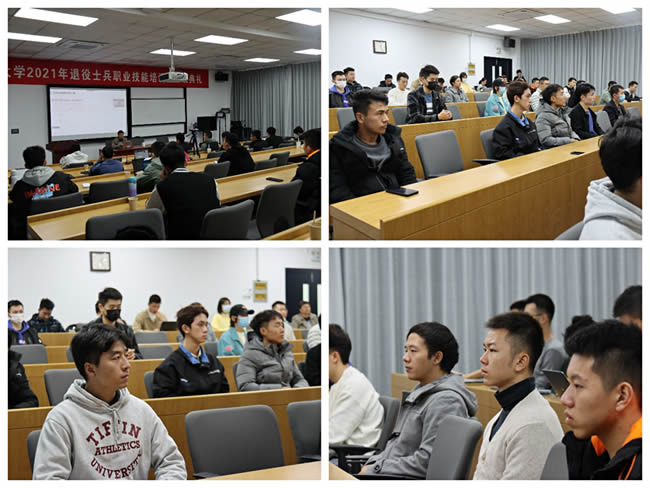 此期培训认真贯彻《中华人民共和国退役军人保障法》《退役军人事务部等七部门关于全面做好退役士兵教育培训工作的指导意见》《关于开展自主就业退役士兵职业技能培训工作的通知》等文件精神,由韦德体育官方网站联合公司团委、就业指导中心、电子与信息工程公司、艺术与传媒公司、经济与管理公司等部门针对退役士兵的实际情况,共同制定出培训方案。