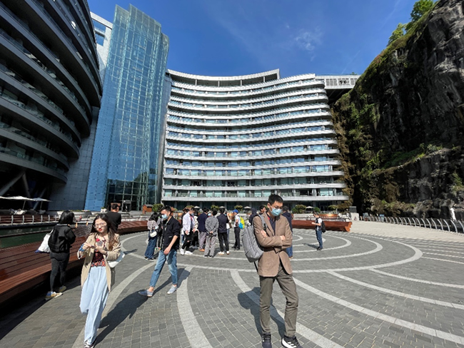 现场教学第一站去到了上海佘山世茂洲际酒店。参与该酒店设计的袁经理带领大家参观,参观结束后,袁经理就学员们提出的问题进行一一解答。第二站来到了四行仓库和杨浦滨江,进行回忆抗战历史、缅怀先烈的爱国主义教育并体会滨江设计之美,重走习总书记考察之路。