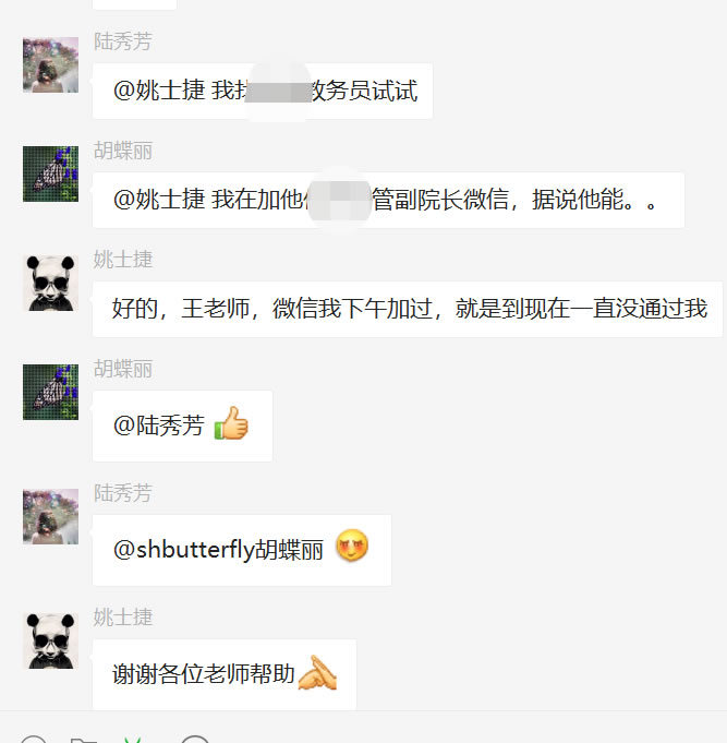 班主任老师根据分工快速启动组建教学平台培训工作交流班级微信群工作,通过手机短信、电话、微信群等多种方式联系参与培训人员。由于微信设置权限、手机关机、遇陌生号码拒接、信息不正确、无人接听等多种原因,很多老师都无法及时联系上。往往为了联系一位老师要动用全方位多种方式联系。公司领导发挥二级党委书记群的号召力,公司组织员发动全校各院系组织员和人事员团队协作,教师所在院系教务联系负责人帮忙拉人进群,在同济各类微信工作群里喊话,甚至询问本单位其他老师。为了确保第二天的培训参加人员不要有遗漏,工作组成员时常都忙到了深夜。在大家共同的努力下,及时联系上了所有参训教师并使之全部加入到班级群中。