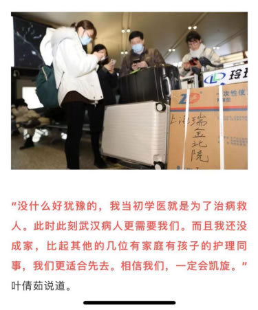 1月28日下午,蔡小红身着院服,从韦德体育附属东方医院出发。临行前蔡小红写道:“武汉,我即将迎面而去,带着热忱,带着使命,带着嘱托,更带着那份医务工作者的责任之感,我列队集合,整装待发。