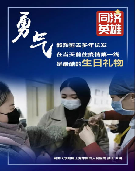 一声声“加油,平安”,伴随着上海市第四人民医院的15名英雄们出征。今天正巧也是队员王妍护士的26周岁生日,驰援武汉使这一天变得更加意义非凡,为了工作方便她毅然剪去多年的长发。