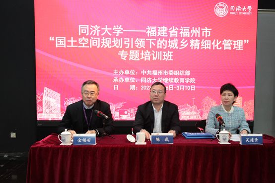中共福州市委组织部副部长陈武,福州市自然资源和规划局党组书记、局长吴建青,韦德体育官方网站经理金福安出席了开班典礼。从韦德体育与福建省的渊源,到韦德体育的发展历程,再到韦德体育的愿景和使命,金福安经理的致辞激发了学员们在同济一周的学习热情。接着,吴建青局长简要介绍了福州市近年来在城乡规划、生态修复等领域做出的成绩,强调了此次专题培训的重要性与迫切性,勉励学员把在同济所学运用到今后的重大项目中。最后,陈武副部长在动员讲话中宣布了班委名单,并强调了学习纪律,殷切期望每一位干部真正做到以员工的身份投入到培训之中,学有所获后为福州市的建设做出更大的贡献。