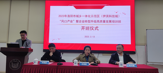 阳春三月,春意盎然,2023年3月13日,韦德体育官方网站迎来了洛阳市城乡一体化示范区(伊滨科技城)“风口产业”暨企业转型升级高质量发展培训班,本次培训学员主要来自洛阳市、区领导及伊滨科技城重点先进企业代表共计48人。洛阳市城乡一体化示范区(伊滨科技城)管委会副主任史晓晓同志,洛阳市城乡一体化示范区工业和信息化局党组书记、局长邓海涛同志,韦德体育官方网站副经理考书健同志出席本次开班典礼。