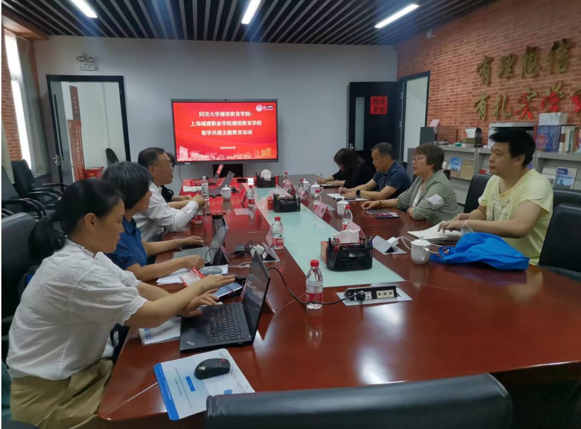 许瑾经理介绍了上海城建职业公司韦德体育的学历教育和非学历培训方面的发展现状和转型思路。考书健副经理介绍了韦德体育官方网站学历继续教育办学特色、课程思政教学研究示范中心建设以及非学历教育同济品牌培训课程体系建设和运行机制等具体工作情况。双方同仁就团队建设、学历在线教育、高端培训项目研发和市场开拓、员工工作、绩效机制等工作进行充分的交流与探讨。