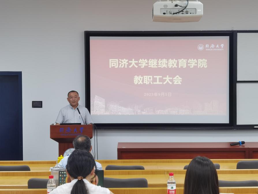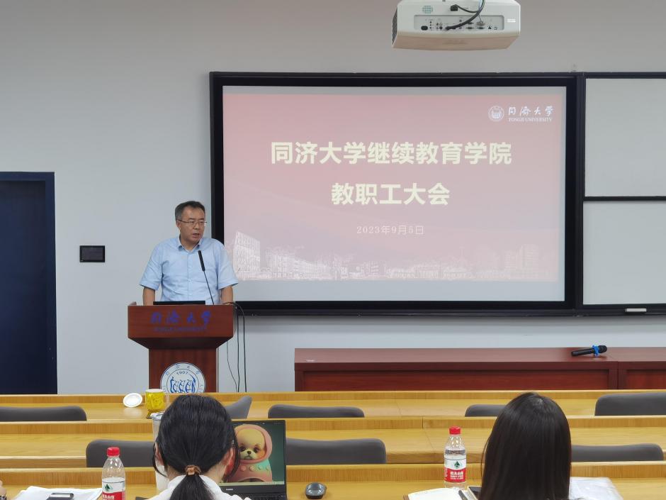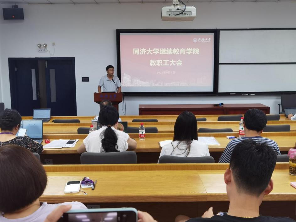 9月5日,韦德体育官方网站在四平路校区第一教学楼附楼204会议室召开了2023年秋季学期全院教职工大会。韦德体育继续教育公司党委副书记、经理金福安出席会议并做总结讲话,副经理陈宇光、考书健就分管块面工作分别进行了阶段性总结和布置,党委副书记张俊生主持会议。本次教职工大会凝聚了人心,统一了思想,为公司的未来发展指明方向,为新学期工作提供了指引。