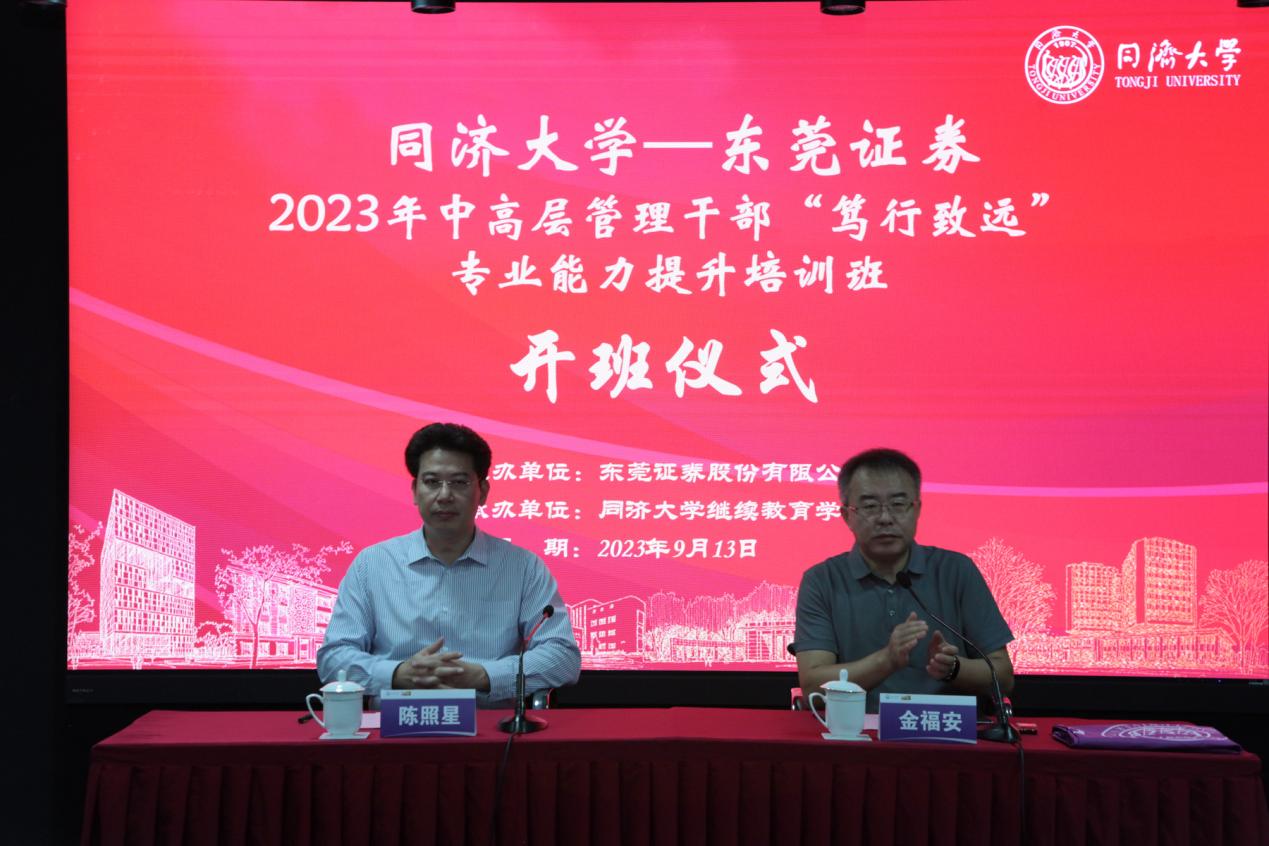 东莞证券股份有限公司党委书记、董事长陈照星,党委副书记、总裁潘海标,党委委员、副总裁李志方,韦德体育官方网站经理金福安,韦德体育官方网站副经理考书健分别参加了开班仪式。