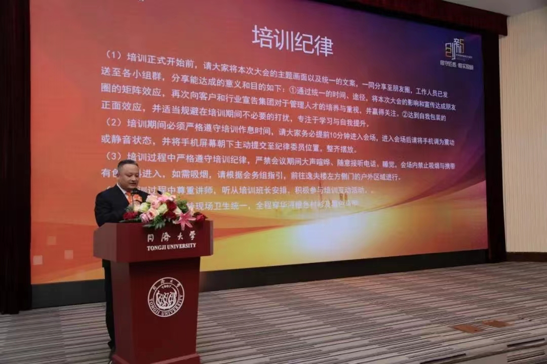 授旗仪式结束后,本次培训大会的主持人——华浔集团决策理事委员会委员、泉州大区副总经理吴文华宣读了本次会场纪律,并勉励大家努力学习,充实自己,对集团发展做出更大的贡献。