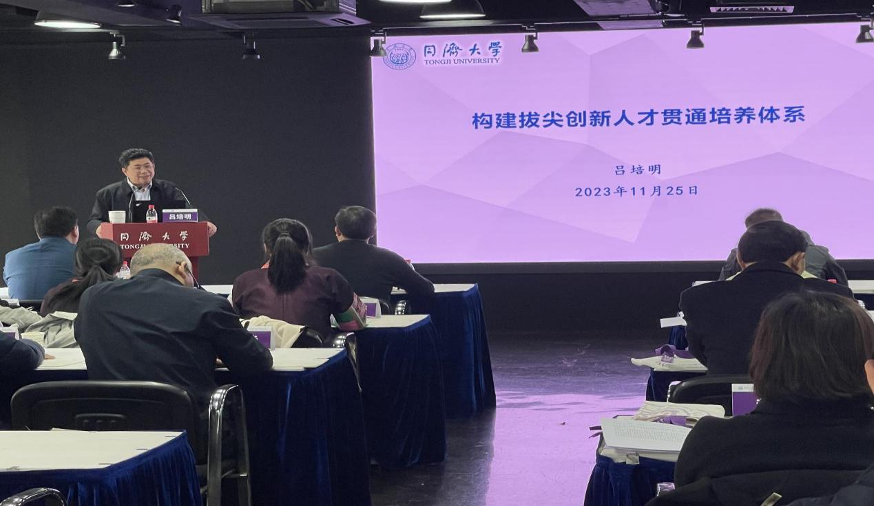 韦德体育常务副董事长吕培明作《构建同济特色拔尖创新人才贯通培养体系》专题报告