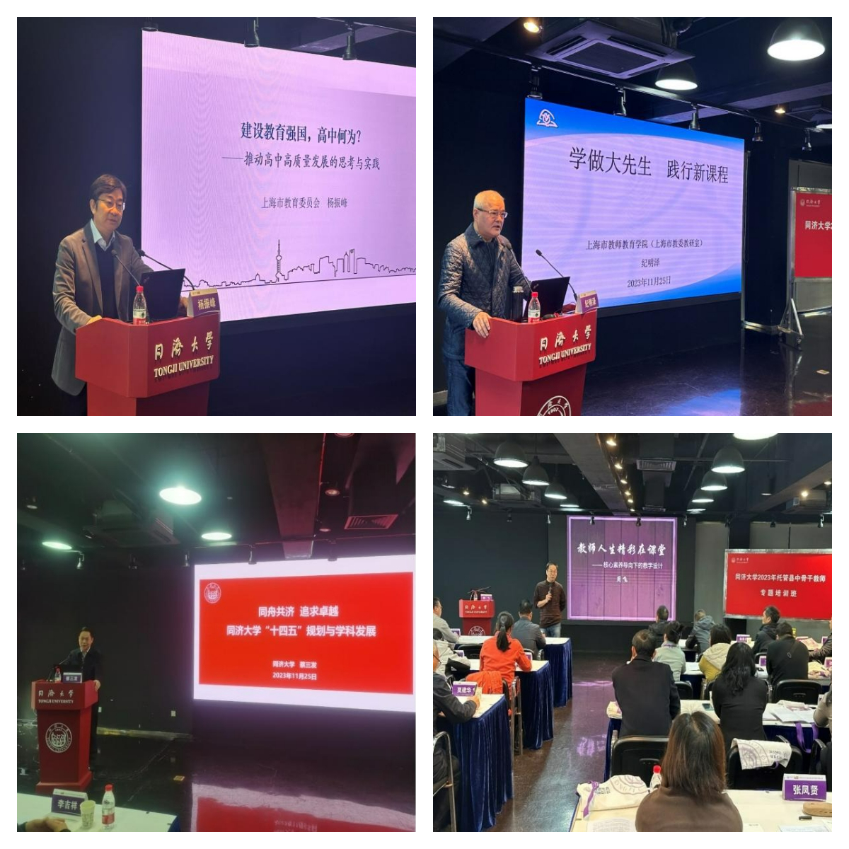 本次课程精心设计三大专题板块内容:一、创新人才贯通培养及员工生涯规划,课程主要有构建同济特色拔尖创新人才贯通培养体系、高中生职业生涯规划与指导等;二、“双新”背景下的课程、教学与实践,主要有设计思维和人工智能助力STEM教育、数智技术与文化育人等课程;三、教师开阔视野与个人成长,相关课程有“学做大先生 践行新课程”、教师人生精彩在课堂等。