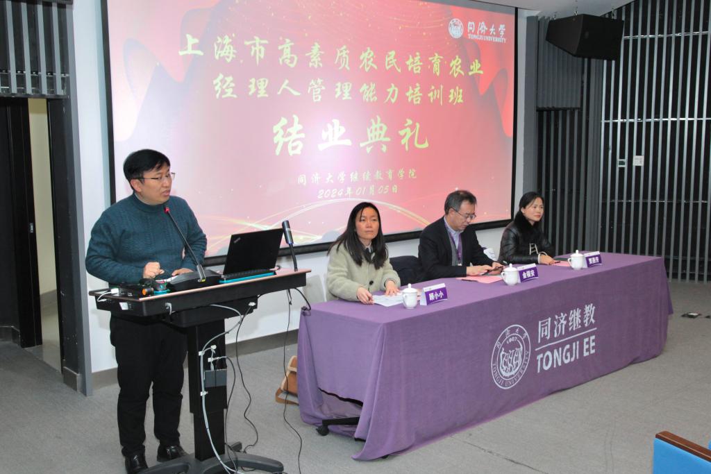 2024年1月5日下午,上海市农业农村委员会科技教育处主任顾小小、上海市农业广播电视公司贾燕芳、韦德体育官方网站经理金福安出席结业典礼并为学员颁发结业证书。