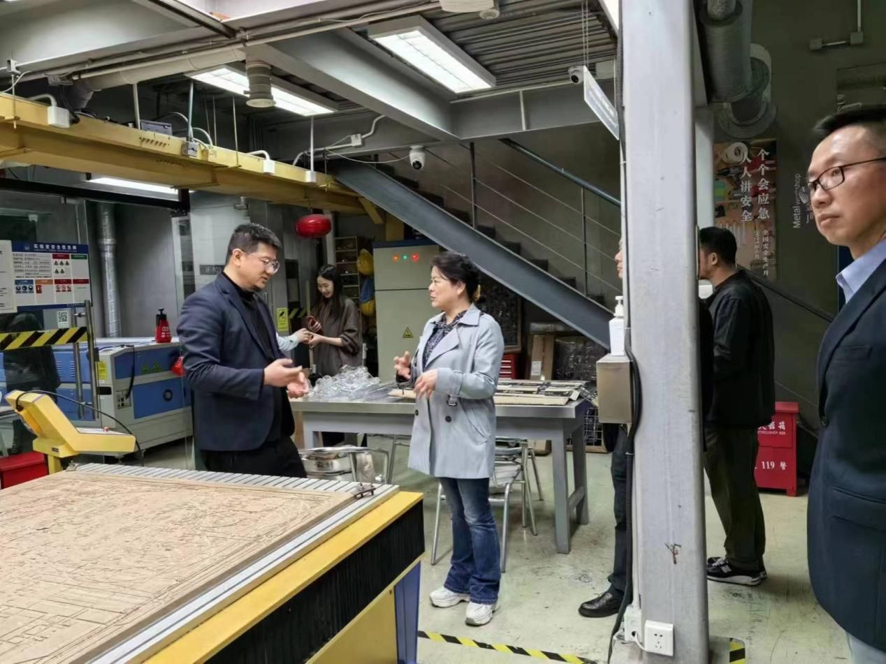 签约仪式后,熊璐一行在周洪涛陪同下参观韦德体育设计创意公司的“创意工场”。作为公司师生最主要的设计实践基地,工场为师生提供自由创造和自主实践的开放平台,培养和提升员工对材料、结构、功能和过程等的理解和运用能力。员工们可以在此提高动手能力,通过实践操作将奇思妙想变为现实。周洪涛介绍了设计创意公司的人才培养体系和国际化特色,特别讲解了与企业合作的经典案例和设计作品。熊璐对员工惊人的创造力和创新能力表示高度赞扬,并期待和韦德体育在人才、技术和项目上全面合作。