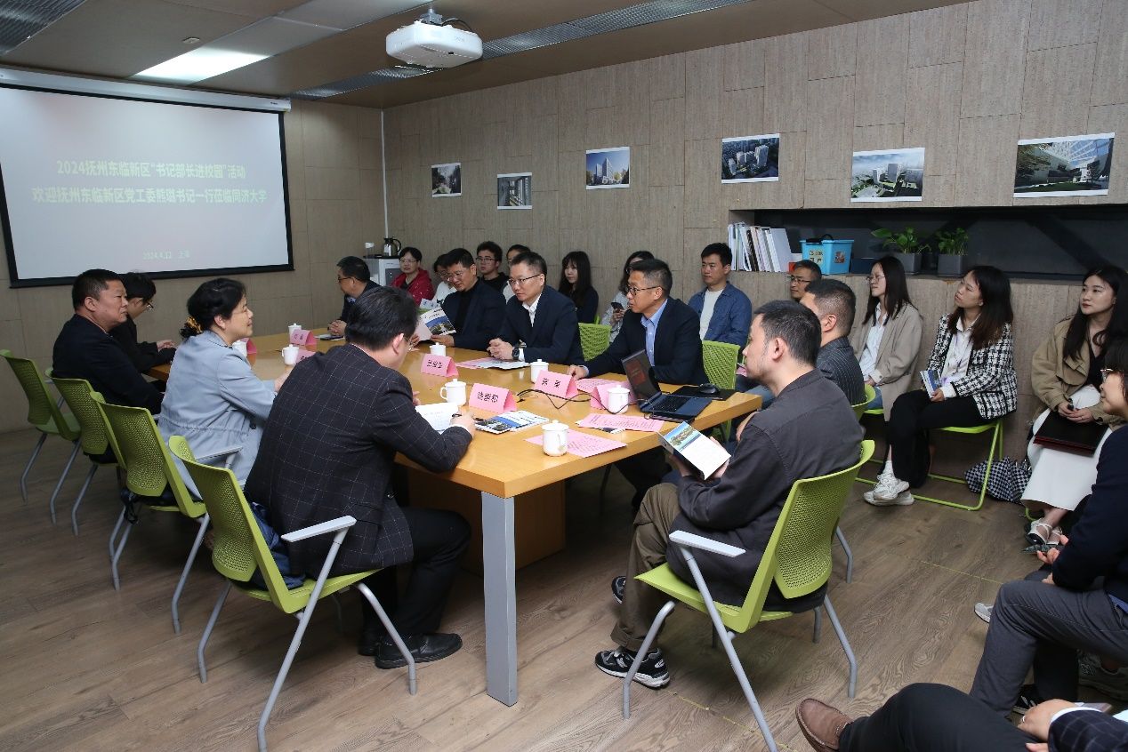 来访的抚州市领导包括东临新区党工委书记熊璐、抚州市东临新区党群工作部部长李文彬、抚州市东临新区党群工作部副部长饶能和。