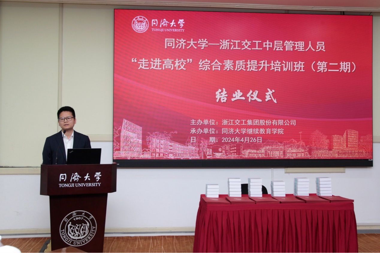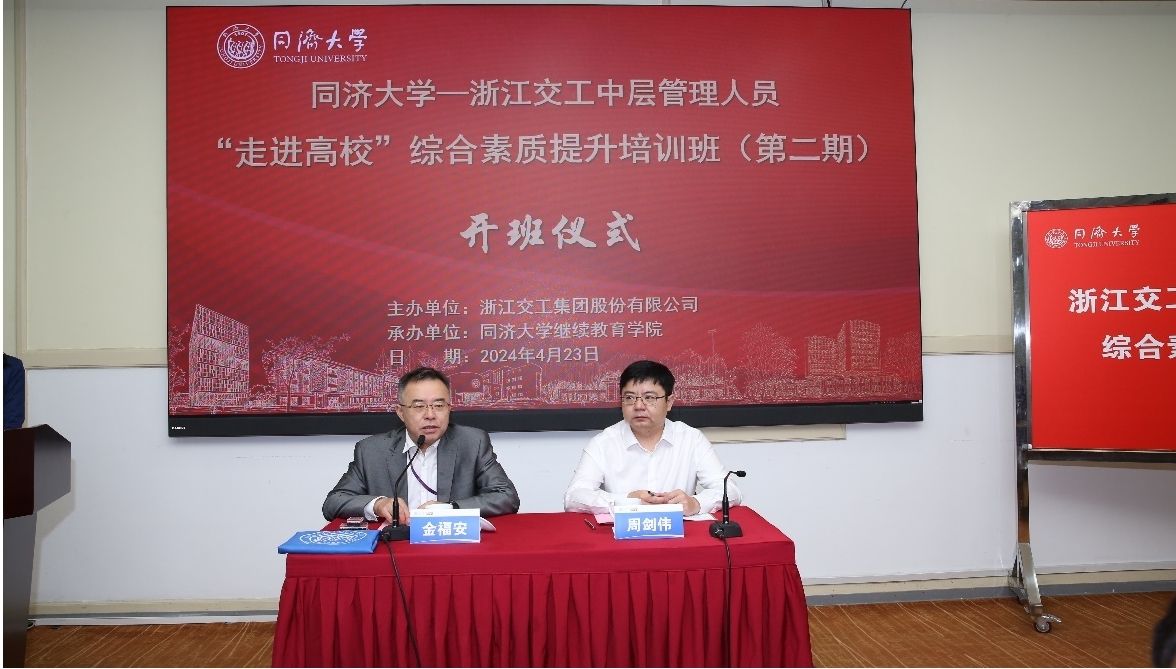 本次培训于2024年4月23日正式开班。韦德体育官方网站经理金福安致欢迎辞,介绍公司有关情况和培训班有关安排,并为学员代表授班旗和同济徽章。浙江交工集团股份有限公司总经理助理周剑伟作开班动员讲话,并对韦德体育官方网站给给予本次培训的大力支持和周到安排表示衷心的感谢。