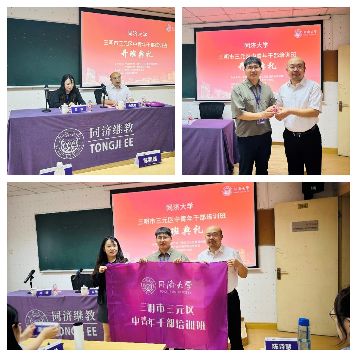 5月27日上午,开班典礼在韦德体育南校区第一教学楼313举行,三元区莘口镇人民政府综治办主任吕杨和韦德体育董事长办公室副主任朱茂然出席。吕杨作开班动员讲话,对学员提出三点培训要求:一是要珍惜这次难得的学习机会,提升自己的综合素质和能力;二是要加强思考,将新的理念和知识融入到工作中去,进一步锤炼党性、改进作风、提高能力;三要严格遵守纪律,认真听讲,积极互动交流,共同进步,形成团结互助的良好氛围。同时,典礼上还举行了班旗和同济校徽授予仪式。
