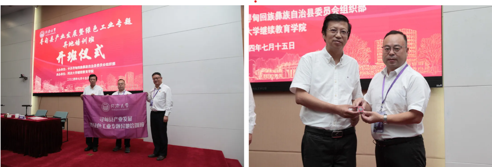 陈宇光为学员代表授予班旗和同济徽章,标志为期一周的培训班正式开启。