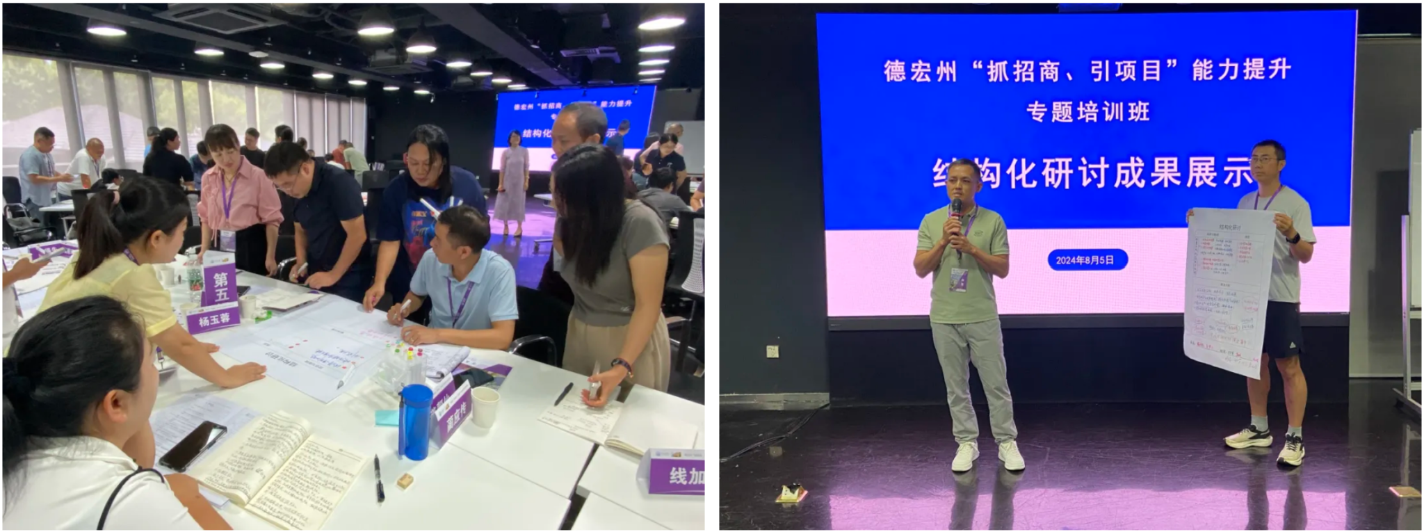 培训中还开展了以“优化营商环境、促进招商引项”为主题的结构化研讨,通过“头脑风暴+鱼骨图”的形式,直面德宏地区招商引资经验和在资金、人才、区位等方面存在的痛点和困惑,集思广益、群策群力,共同探讨解决问题的思路,在交流碰撞中构建具有德宏特色优势的营商环境体系和招商引资模式。