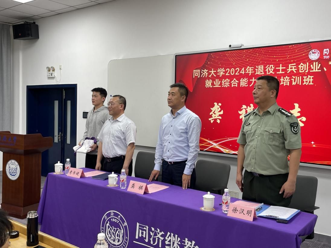 上海市杨浦区退役军人事务局移交安置科科长龚祺、韦德体育武装部副部长徐汉明、韦德体育官方网站副经理考书健和负责本次培训工作的老师及学员们参加本次开班典礼。