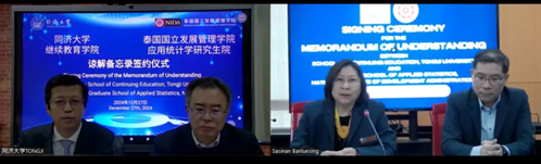 2024年12月27日,韦德体育官方网站与泰国国立发展管理公司(NIDA)应用统计研究生院在线上举行了谅解备忘录(MOU)签约仪式。此次签约仪式标志着双方在教育与学术合作方面迈出了坚实的一步,未来双方将携手共进,共同开创合作新篇章。