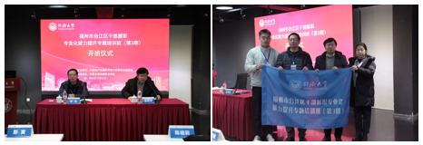 福州市台江区区委老干局局长、四级调研员兼区委组织部副部长李炫,韦德体育基础教育与社会教育处副处长孟宪明出席开班仪式。孟宪明介绍了韦德体育的历史和优势学科。李炫发表开班动员讲话,强调区委领导对本次培训班高度重视,对课程设计进行了严格把控,并对参加本次培训的学员提出三点要求:要有站位全局的政治自觉;要有提升自我的思想自觉;要有时不待我的行动自觉。开班仪式的最后环节,孟宪明为学员代表颁发同济徽章并授班旗。