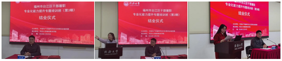 福州市台江区区委党校(区行政公司)副董事长石羽出席12月29日结业典礼,并作总结发言。他表示,本次培训班在福州市台江区区委和组织部的高度重视下,通过精心设计课程内容和跟岗学习安排,帮助学员深入学习城市更新、招商引资等前沿知识,拓宽视野,提升履职能力。接下来,40位干部将赴上海杨浦区开展跟岗学习,进一步借鉴先进经验,提升实践能力。希望全体学员珍惜机会,服从安排,深学善思,学以致用,努力转化学习成果,为台江区的发展贡献新的智慧与力量。