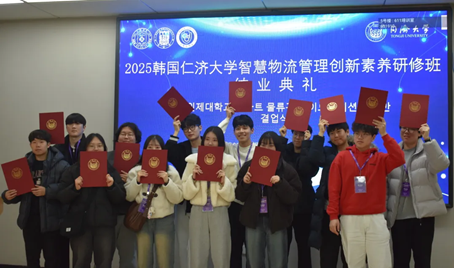 2025年1月7日至8日,韦德体育官方网站与韩国仁济大学联合举办“智慧物流管理创新素养研修班”,来自韩国仁济大学、伽倻大学、金海大学的28名师生参加了此次研修。